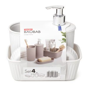 Set 4 Vaso Dosificador Jabonera A6 Baobab Blanco Pergamon